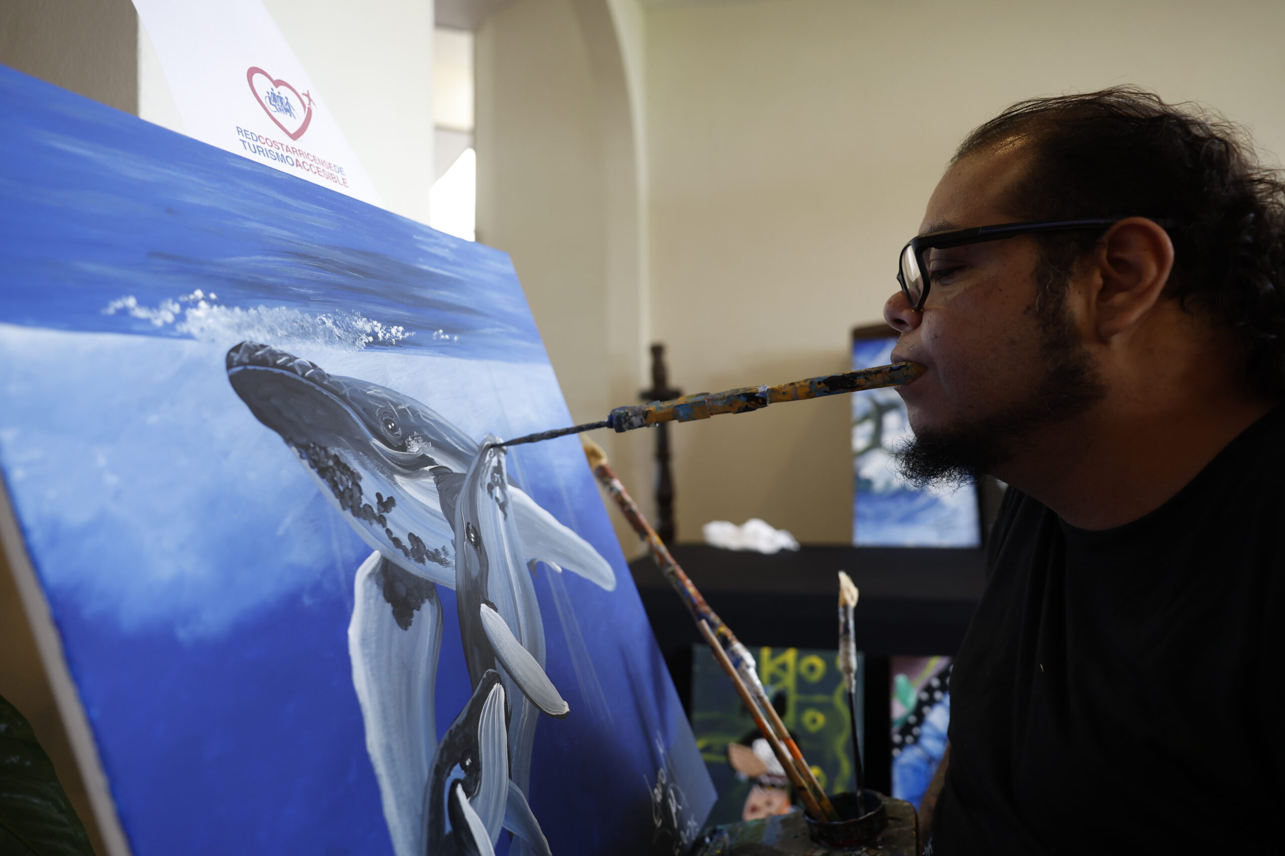 Jairo Mora es un artista que nació con una discapacidad innata que le impide tener movilidad en sus brazos, pero no es un obstáculo hacer lo que ama: pintar.