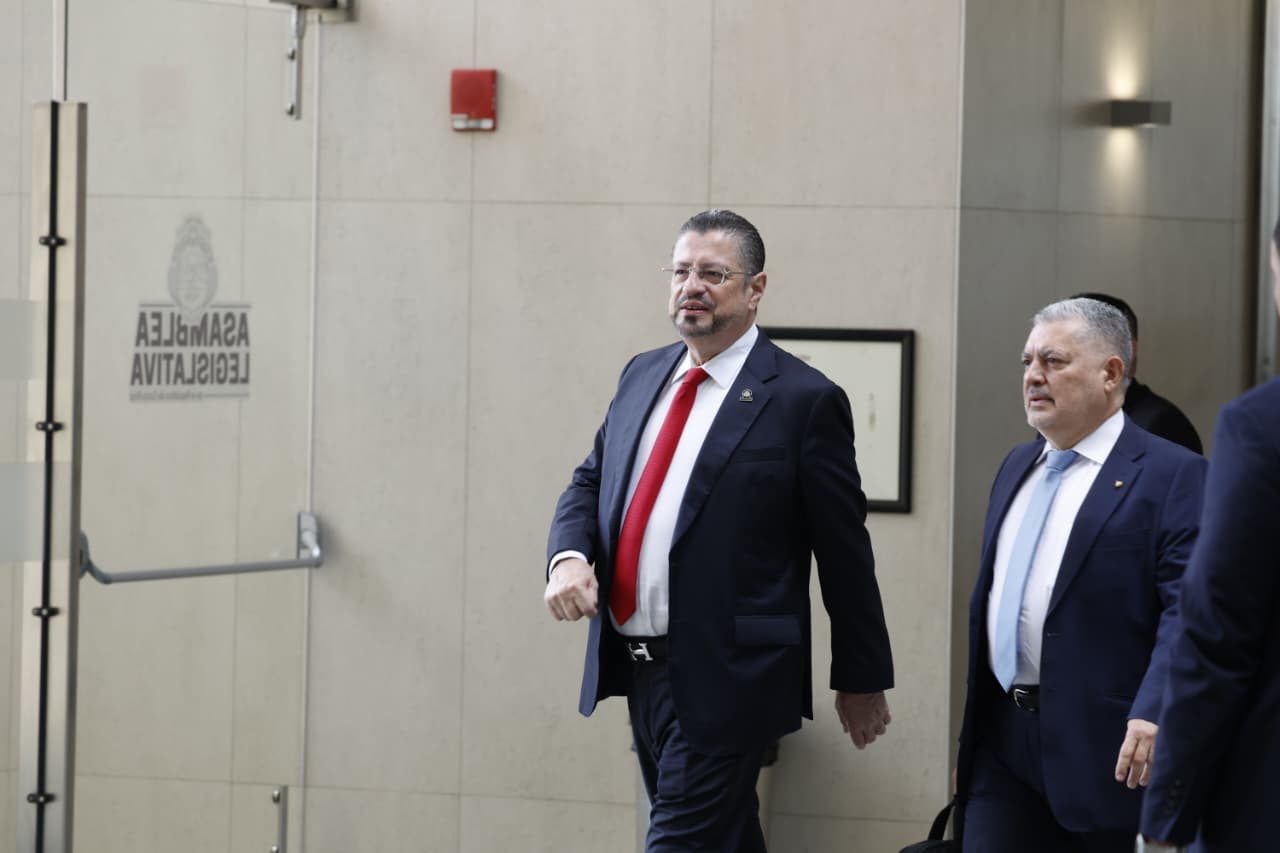 El presidente Rodrigo Chaves ingresó minutos antes de las 9 de la mañana al salón de expresidentes donde comparecerá ante los diputados de la comisión legislativa encargada de investigar la supuesta guerra política.