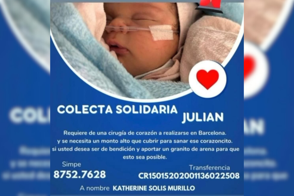 La madre del niño, Karla SolísExplicó que tienen un período de unos tres meses para realizar una cirugía antes de que los pulmones de Julian sufran daños irreversibles.