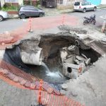 Un gran agujero apareció frente al centro de Guadalupe la semana anterior y afectó la entrada a las casas y la calle del área.