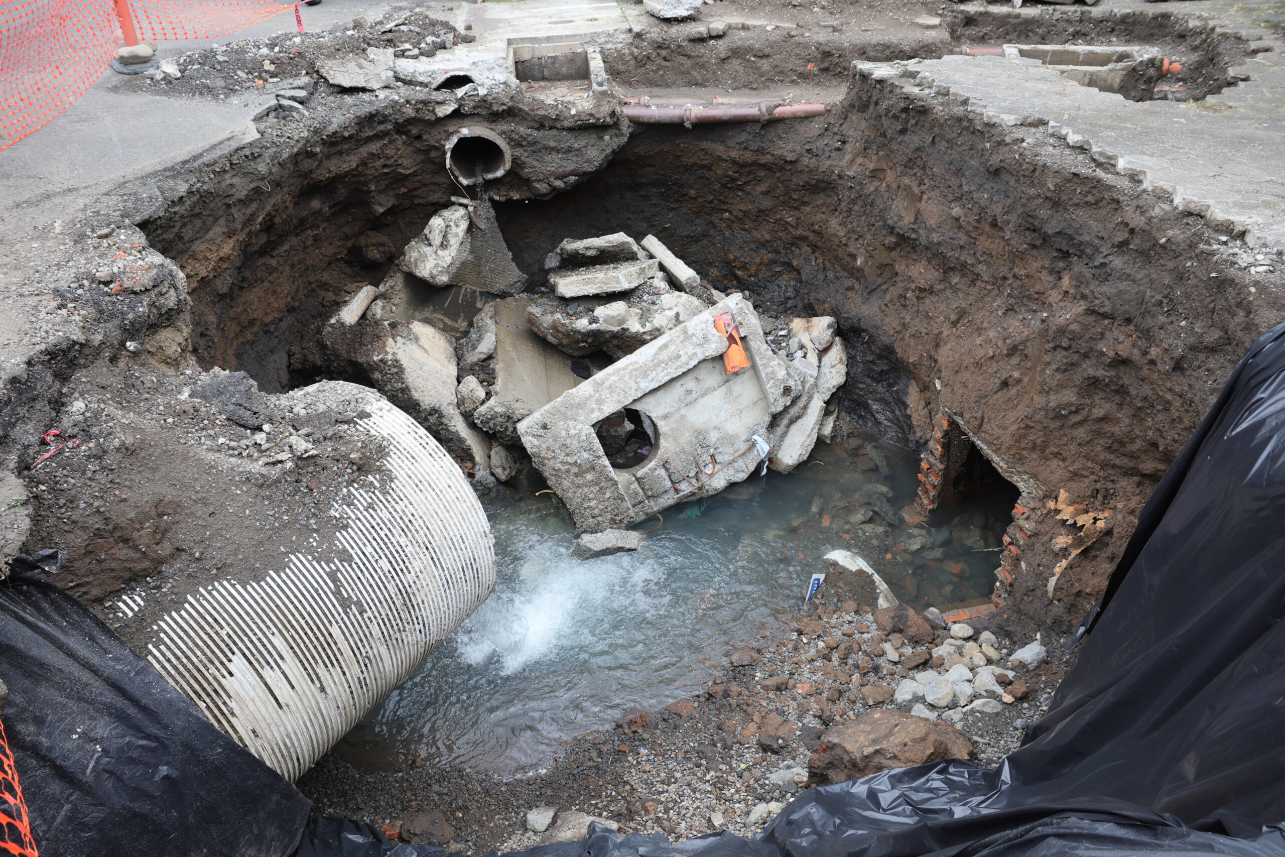 Los vecinos del área descubrieron este imperfecto estructural cuando una sábana de ladrillo cayó mientras adelantaba a un automóvil en el área. Cuando observan el ladrillo, descubrieron el vacío entre la calle y las tuberías.