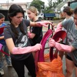 Danzay, academia de baile en Barrio Dent, intenta salvar la mayor cantidad de ropa posible tras las inundaciones de este jueves.
