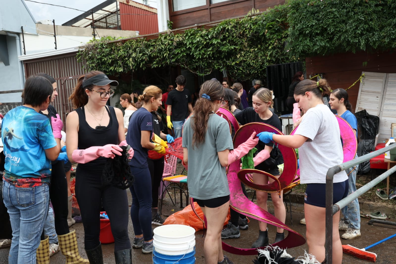 Danzay, academia de baile en Barrio Dent, intenta salvar la mayor cantidad de ropa posible tras las inundaciones de este jueves.