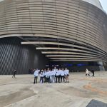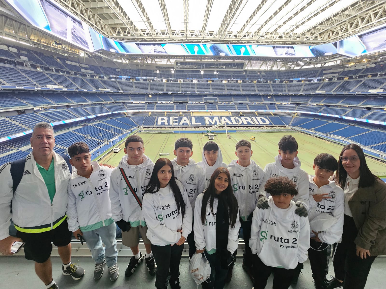 Álvaro Arbeloa, embajador de la Fundación Real Madrid y entrenador del Real Madrid Castilla, recibió en las instalaciones deportivas a Belén Castro, directora de Recursos Humanos, Comunicación y RSC de Globalvia, y a Claudio Pacheco, director general de Ruta 27.