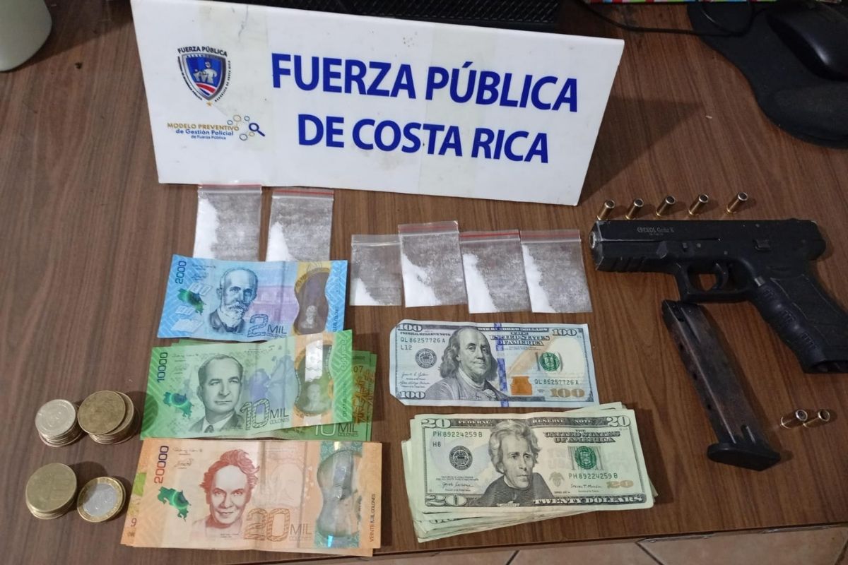 Entre los elementos incautados se encuentran dos celulares Apple, dinero en efectivo y una pistola calibre 9 mm. El detenido fue presentado ante la Fiscalía Ordinaria de Liberia para elaborar el informe policial y el informe de incautación.