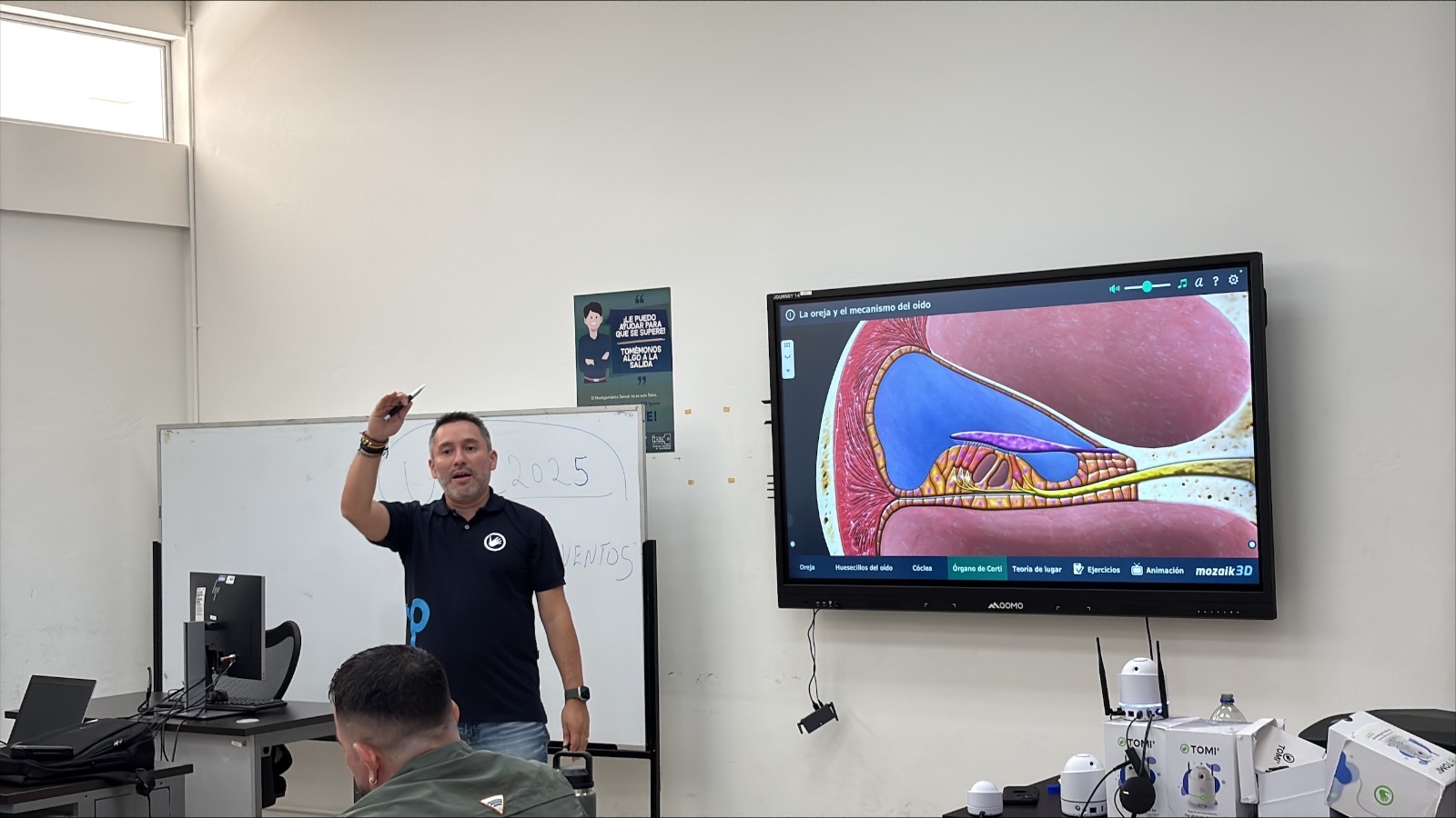 La iniciativa consiste en el préstamo de dispositivos TOMi, una tecnología que permite convertir proyectores o pantallas convencionales en superficies interactivas, integrando herramientas y funciones de interacción basadas en Inteligencia Artificial.