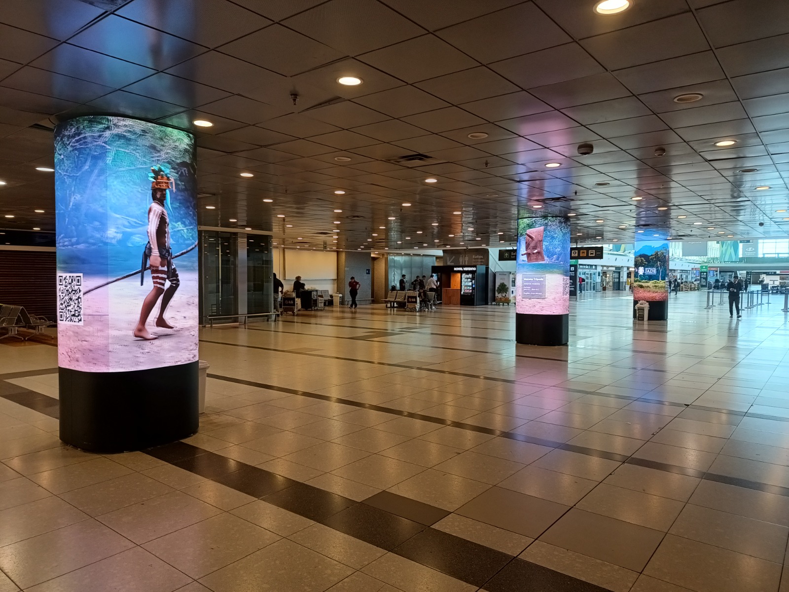 El Museo Jade del Instituto Nacional de Seguros (INS) llegó al Aeropuerto Internacional del Ministro Pistarini, conocido como Ezeiza, en Argentina por proyecciones animadas de piezas emblemáticas y personajes de las sociedades precolumbianas de Costa Rica.