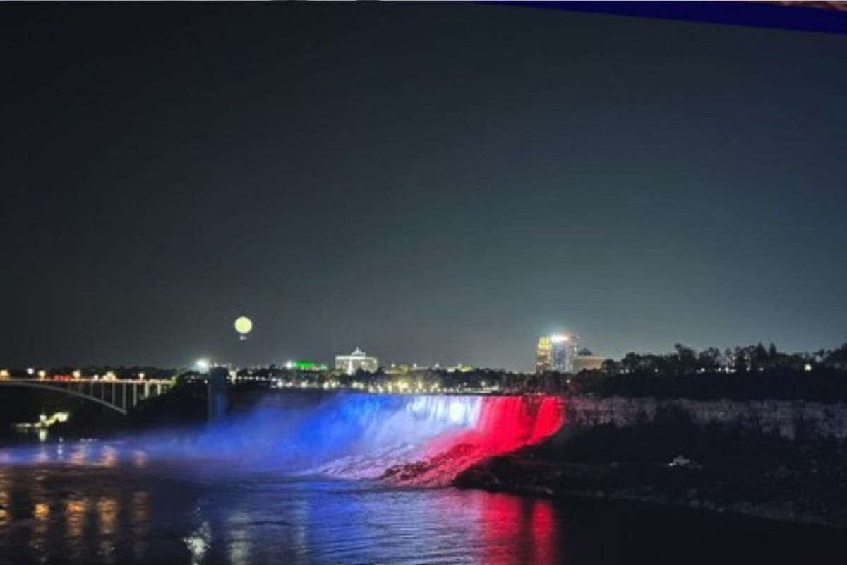 Las majestuosas cataratas de la Niágara fueron pintadas el domingo 14 de septiembre con los colores del azul, blanco y rojo de la bandera de Costa Rica, en un homenaje especial para el 204 aniversario de la Independencia.