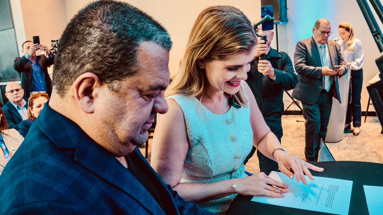 Laura Fernández y el candidatos del partido Pueblo Soberano ellos firman un pacto con la comunidad evangélico bajo una carta titulada “Valores para una Costa Rica justa para todos”en el que se comprometen a regir su función pública última según una serie de principios ética, moral y gestión.