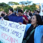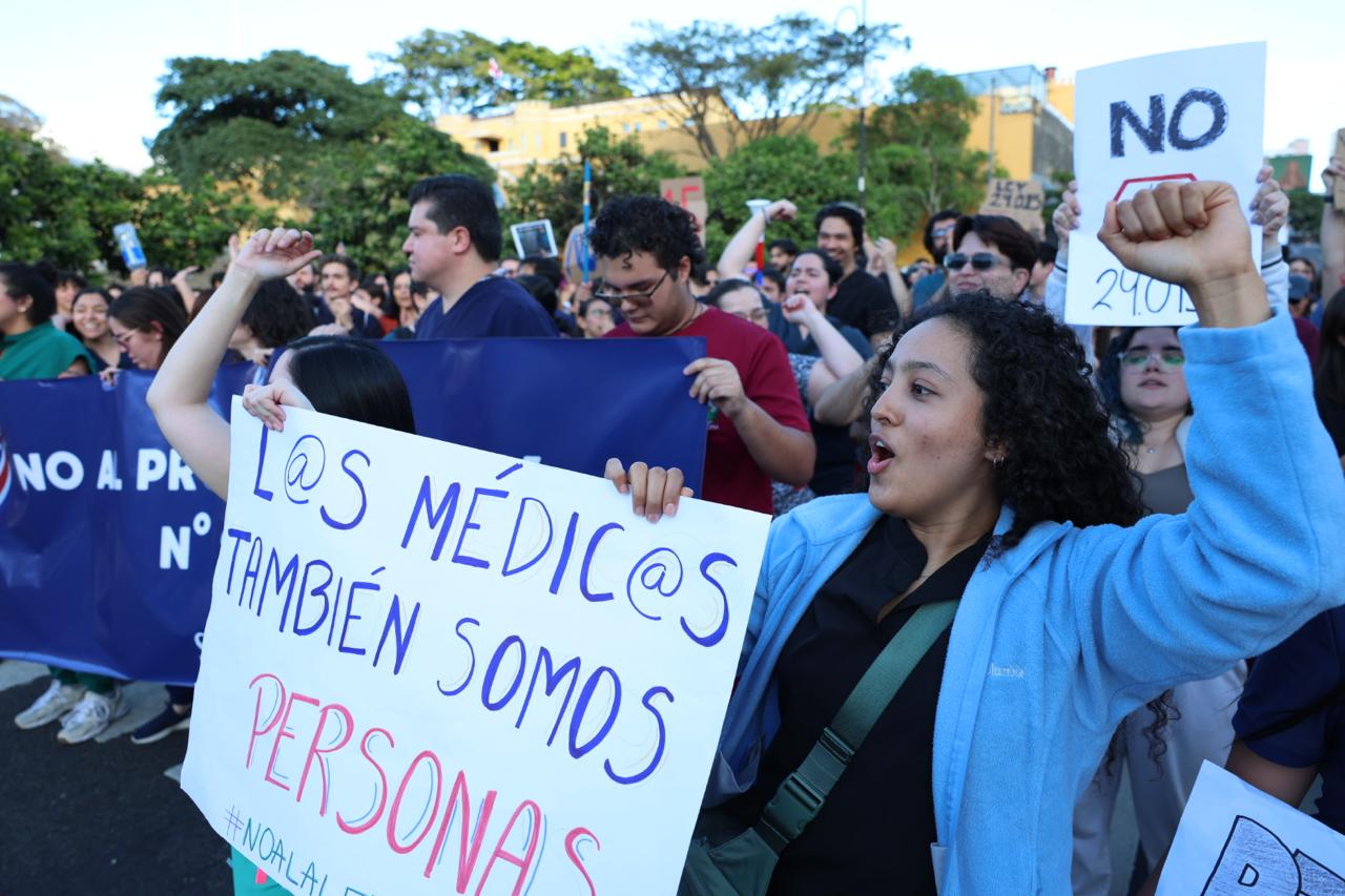 Un grupo de estudiantes y profesionales de medicina protestaron frente a la Asamblea Legislativa contra el proyecto de ley 24.015 denominado “Fortalecimiento de la Salud Pública”, alegando que no se les permite el ingreso a las instalaciones.