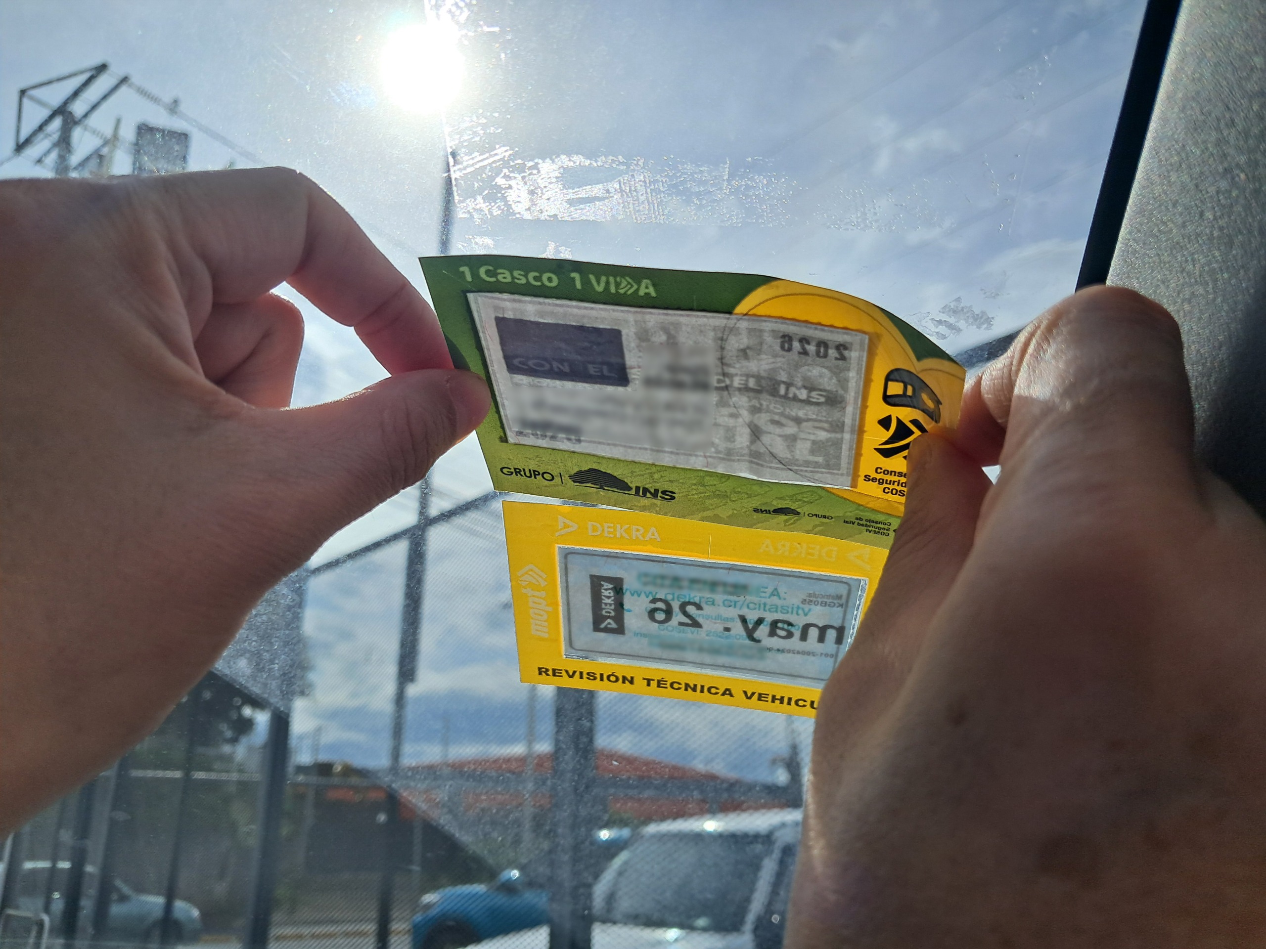 Si el pegamento se pierde o se daña, el La gestión de reposición deberá realizarse directamente en el Instituto Nacional de Seguros (INS).. Esta gestión no corresponde al MOPT.